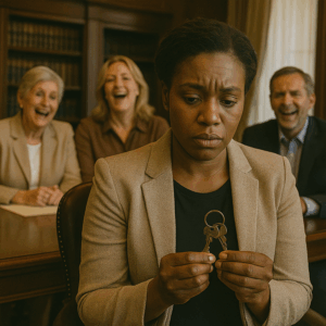 El eco de la risa retumbaba en los pasillos de la mansión Thornton. La lectura del testamento de Robert Thornton Jr., muerto en un accidente, se había convertido en un espectáculo cruel.