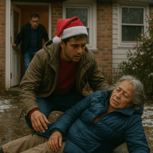 Llegué a casa antes de lo previsto en Navidad. Encontré a mi abuela desplomada en el patio, empapada, a 28 grados Fahrenheit, entre luces apagadas y regalos sin abrir. Lo que descubrí después, al revisar sus manos heladas y la nota que sostenía, cambió para siempre el significado de la palabra familia.