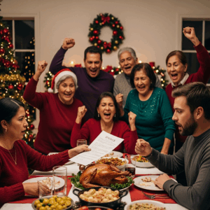La Navidad estaba pintada como una noche tranquila. Las luces titilaban en el árbol, los villancicos sonaban de fondo y el aroma a canela y pavo llenaba la sala. Para Julián, sin embargo, todo cambió en un segundo.