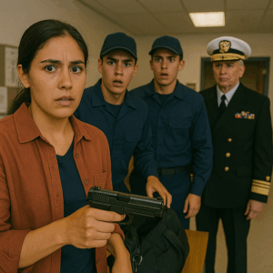 Los cadetes registraban las mochilas al azar cuando encontraron una pistola en la suya. Todos se quedaron inmóviles. El silencio fue total, hasta que se abrió la puerta y el Almirante entró. Nadie entendía por qué él la miró con lágrimas en los ojos… ni qué verdad llevaba ese arma consigo.
