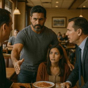 ““Mesa equivocada, día equivocado, caballeros”, dijo el padre soltero con voz serena pero firme, cuando tres hombres intentaron intimidar a una mujer en un restaurante. Lo que ninguno sabía era que aquel hombre —aparentemente común, con su hijo esperándolo en casa— escondía un pasado tan oscuro como heroico. Aquella noche, al defender a una desconocida, no solo reveló quién era realmente… sino también el secreto que había jurado enterrar para siempre.”