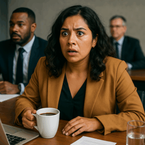 Mi esposo vertió algo en mi café antes de una reunión crucial; veinte minutos después, frente a todos mis compañeros, descubrí que no intentaba hacerme daño… sino revelar una verdad que había estado escondiendo durante meses