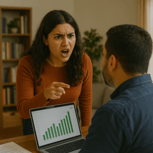 Rodrigo fingía indignación, presentando “pruebas” de que Claudia había manipulado los fondos.
