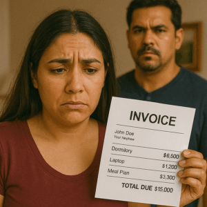 —Es la matrícula de mi hijo, Samuel. Entró a la universidad estatal. Son 15.000 dólares: dormitorio, comida, laptop, todo incluido.