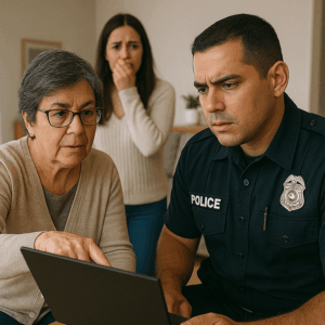 Mi nuera llamó a la policía diciendo que yo estaba “inestable” y “necesitaba ayuda urgente”. Cuando los agentes llegaron, los invité a pasar con calma y les dije: “Por favor, vean esto”. Lo que mostraba la grabación de mi sala cambió todo — y nadie volvió a llamarme loca.