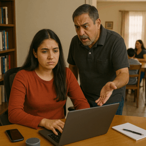 Una noche, mientras trabajaba en su proyecto final —una aplicación que optimizaba procesos de producción para pequeñas empresas—, su padre entró al cuarto.