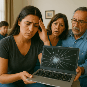 Mi sobrino destruyó mi computadora portátil durante una visita familiar y mi madre solo dijo: “Los niños rompen cosas, cariño, no hagas un drama”. No respondí. Dos semanas después, cuando mi hermano y sus hijos fueron a sacar su mesada, descubrieron que algo más también se había roto.