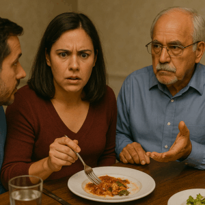 “Mi suegro envenenó mi comida, pero mi esposo dijo que todo estaba en mi cabeza… hasta que llegaron los resultados del laboratorio, y lo que descubrimos después no solo cambió mi matrimonio, sino que reveló un secreto familiar que llevaba más de veinte años oculto bajo nuestras propias comidas.”