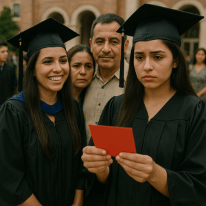 Mientras mi gemela recibía un viaje por todo el continente como premio de graduación, yo sostenía una tarjeta de diez dólares y una sonrisa fingida — lo que descubrí después sobre el motivo de ese trato desigual me dejó sin palabras y reveló el verdadero valor de la familia.