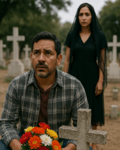 Ese día, el cementerio estaba casi vacío. El viento movía las hojas secas y el sonido de sus pasos retumbaba entre las lápidas. Mientras acomodaba el ramo sobre la tumba, sintió que no estaba solo. Una sombra se deslizó entre las cruces.