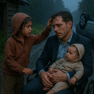 Lo que comenzó como una tragedia bajo la lluvia se convirtió en una historia de redención y reencuentro. Un millonario herido, un bebé vulnerable y una niña sin hogar que arriesgó todo por ayudar revelaron una verdad enterrada por años.