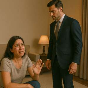 Laura estaba de rodillas en la entrada, empapada por la lluvia, con la voz quebrada y las manos temblorosas.
