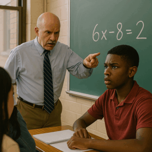 En una escuela común, un maestro desafió cruelmente a un estudiante negro ofreciéndole su sueldo entero si resolvía una ecuación imposible. Lo que el muchacho hizo frente a toda la clase reveló una verdad tan impactante que destrozó la reputación del profesor en cuestión de minutos.