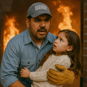 “Sabía que vendrías”, dijo la niña entre el humo. Nadie imaginó que el humilde conserje, padre soltero, se lanzaría al fuego para salvar a la hija del millonario que nunca lo había mirado dos veces… hasta esa noche.