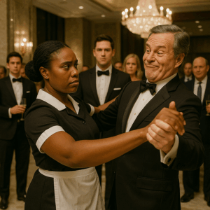 Kesha avanzó con paso elegante. Tomó a Richard de la mano con seguridad y comenzó a moverse. En segundos, la sala quedó boquiabierta. Sus giros eran precisos, sus movimientos fluidos, cada paso irradiaba una elegancia natural que contrastaba con el uniforme de limpiadora que llevaba puesto.