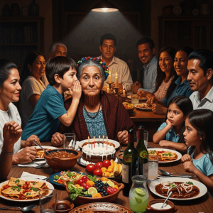“Todo parecía alegría en la celebración, pero un susurro cambió la noche: ‘Abuela, no estás a salvo’. El niño advirtió justo a tiempo, y lo que sucedió después en la mesa dejó a toda la familia en shock, destapando un secreto terrible que transformó aquella reunión para siempre”