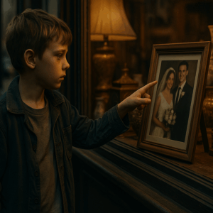 Entre relojes antiguos, lámparas de bronce y retratos enmarcados, había una fotografía de boda en blanco y negro. El niño la miró fijamente y, con voz clara, dijo: