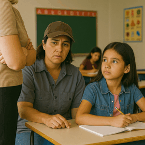 —Mira, no quiero ser grosero —dijo—, pero deberías pensar si esta escuela es el lugar adecuado. Hay ambientes que simplemente no encajan con… ciertas realidades.