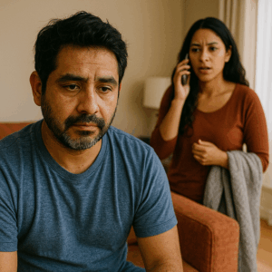 Cuando colgó, me miró con una mezcla de culpa y determinación.