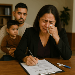 El CEO, Gabriel Vega, tenía las manos temblorosas. Frente a él, sobre la mesa de cristal, reposaban los papeles del divorcio.