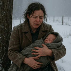 La ventisca cubría todo el norte de Arizona con un manto blanco que parecía no tener fin. El viento silbaba entre los árboles desnudos y el aire helado cortaba la piel como cuchillas invisibles. En medio de aquella tormenta, una mujer joven avanzaba tambaleándose, con un abrigo viejo, los labios morados y un bebé envuelto en una manta empapada contra su pecho.