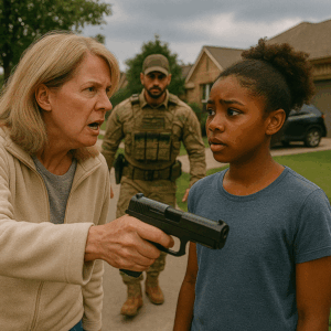 Una mujer del vecindario amenazó a una niña de doce años por vender limonada en la acera, sin saber que el padre de la pequeña —un ex soldado de élite— la estaba observando desde el silencio… y que su lección no sería de fuerza, sino de justicia.