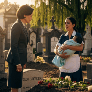 Una mujer rica visitó la tumba de su hijo y halló a una camarera desconocida llorando con un bebé en brazos. Lo que descubrió en ese cementerio no solo cambió su duelo, sino que reveló un secreto oculto que transformó para siempre el destino de toda su familia.