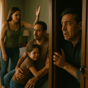 David salió del armario con las piernas temblando. Abrazó a su hija con fuerza, prometiéndole entre sollozos que nunca más la dejaría sola. Esa misma noche enfrentó a Laura. La discusión fue brutal: él la acusó, ella negó, intentó justificarse, incluso culpó a Clara de inventar historias.