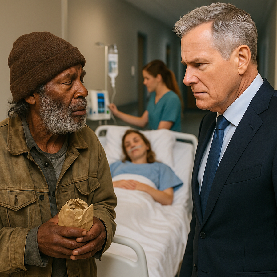 Cuando salió del hospital para despejarse, el sonido de la ciudad lo envolvió. En la acera, un hombre de aspecto humilde se acercó.