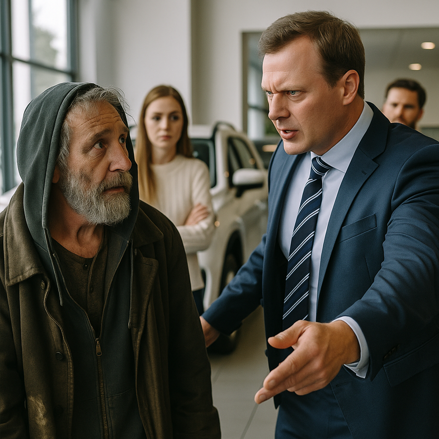 👉 Echaron a un mendigo del concesionario… sin saber que era el dueño 😱