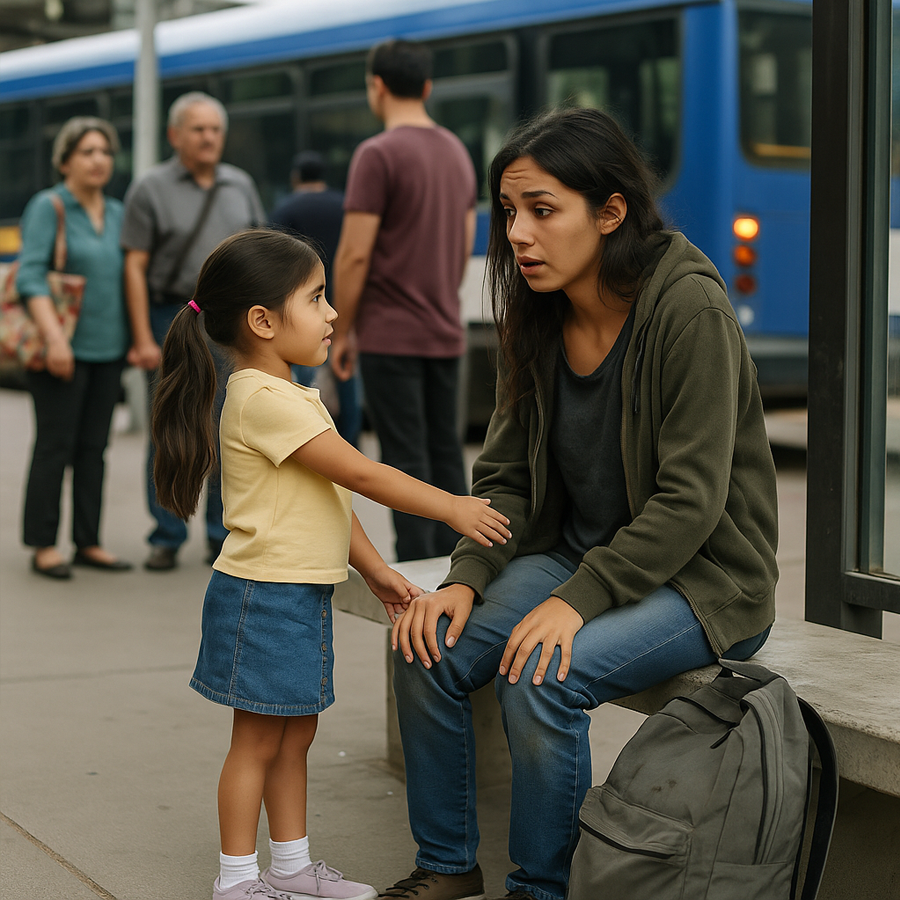 En una tarde cualquiera, en medio del bullicio de una ciudad mexicana, el destino unió a dos almas que parecían venir de mundos opuestos: una joven sin hogar y una niña con el corazón más grande que su edad. Lo que comenzó como un encuentro fortuito en una parada de autobús se convirtió en una historia que conmovió a todos los que la presenciaron… y a millones más que la conocerían después.