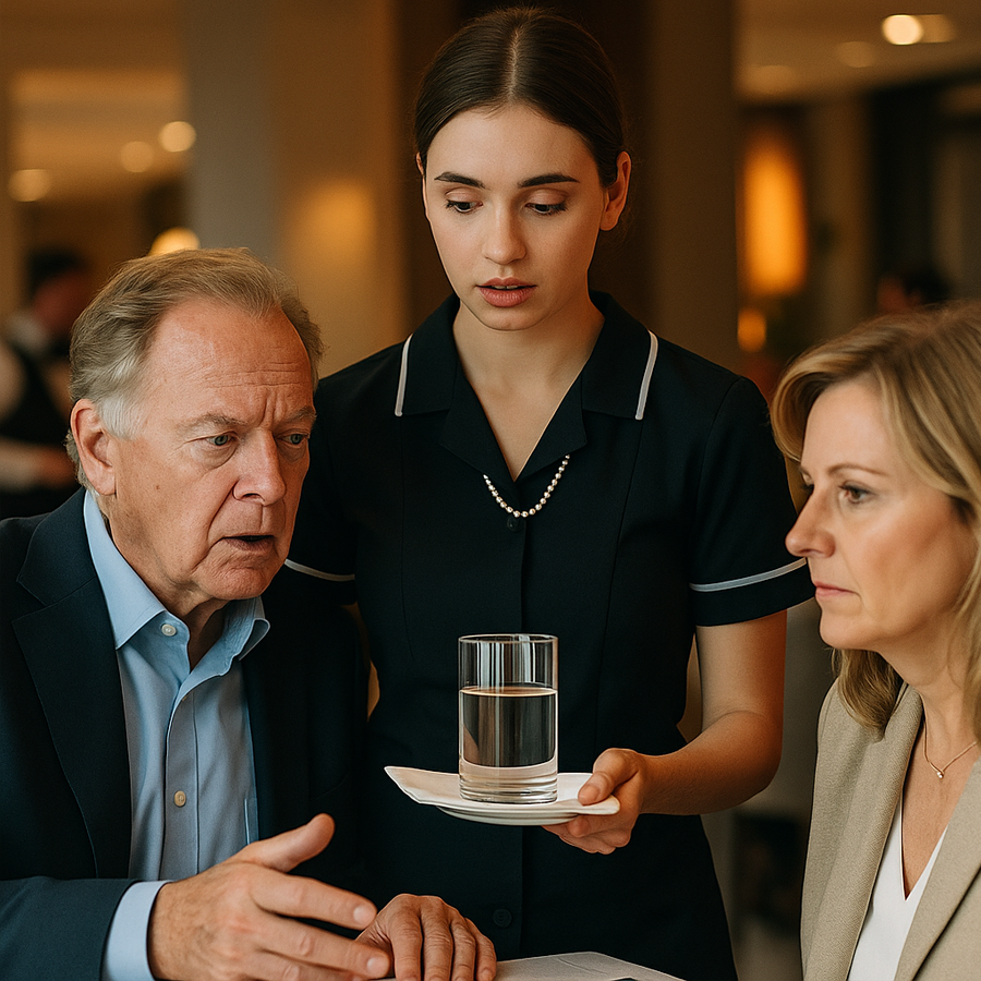 Nada parecía fuera de lo común, hasta que una joven camarera se acercó a su mesa con una bandeja de agua.