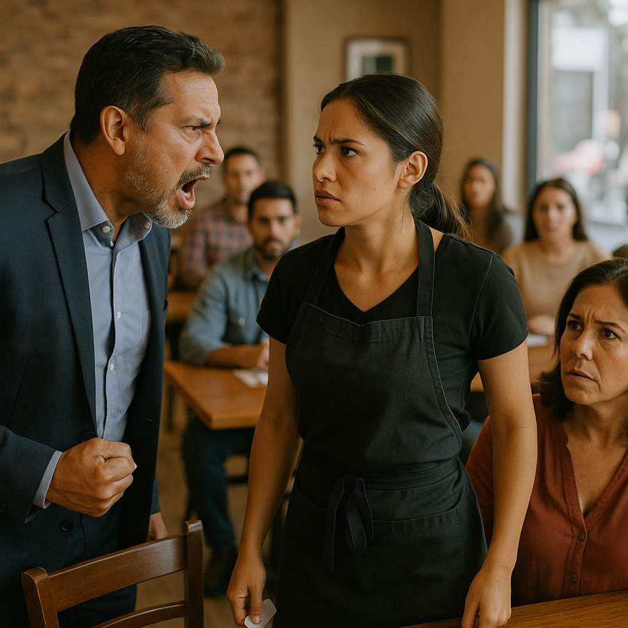 —“¿Por qué tardan tanto en servir? ¿No entienden que tengo prisa? ¿O es que aquí contratan a cualquiera?” —rugió el millonario, golpeando la mesa.