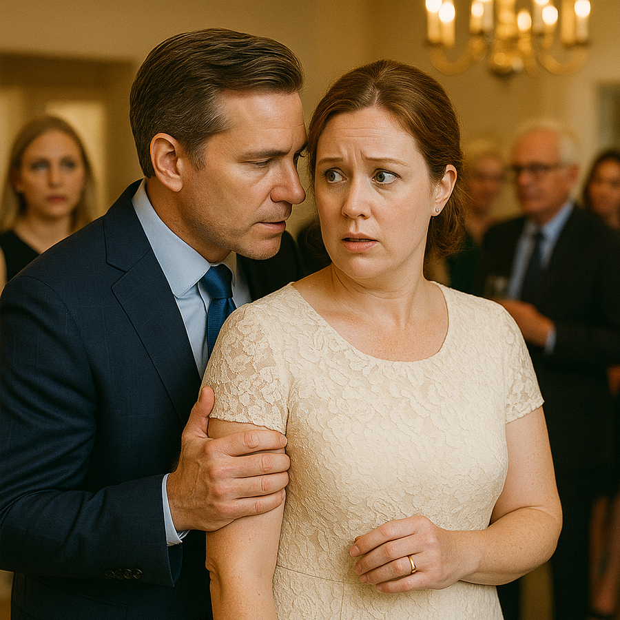 Mientras tanto, los invitados comenzaron a fijarse en la pareja. David, con su encanto natural, la presentó como “mi esposa, Emily Collins”. Ella, temblando, apenas logró sonreír.