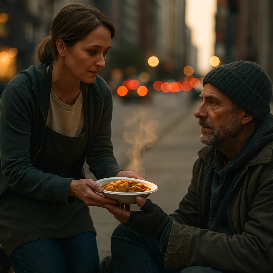 Pero para Clara, una mujer que trabajaba largas horas en una cafetería cercana, no era un desconocido. Día tras día, al terminar su turno, ella le llevaba un plato de comida. A veces un pan, a veces un café caliente, otras veces la cena que guardaba para sí misma.