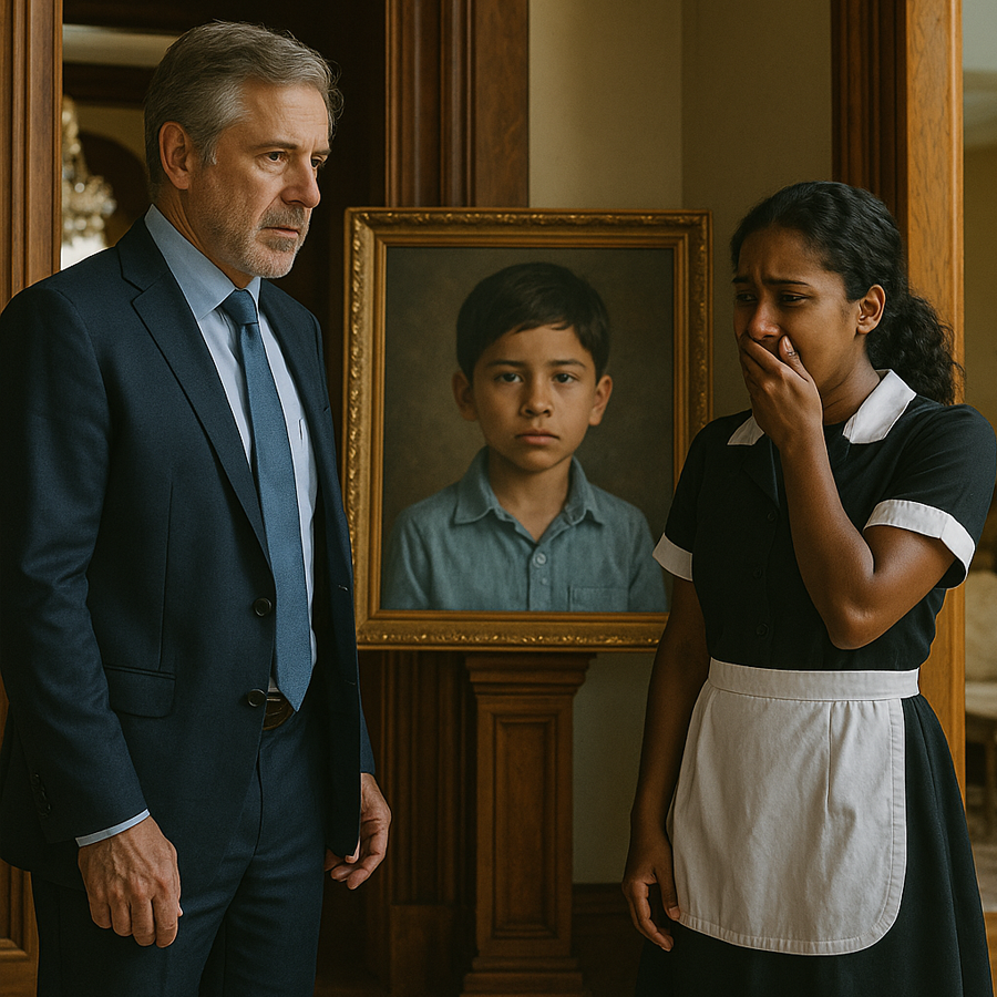 😱 “‘¡Señor, ese niño vivía conmigo en el orfanato!’ — gritó la empleada doméstica al ver el retrato colgado en la mansión del millonario. Lo que reveló después dejó a toda la familia sin aliento y destapó una historia de abandono, amor y redención que había permanecido oculta durante más de una década.”