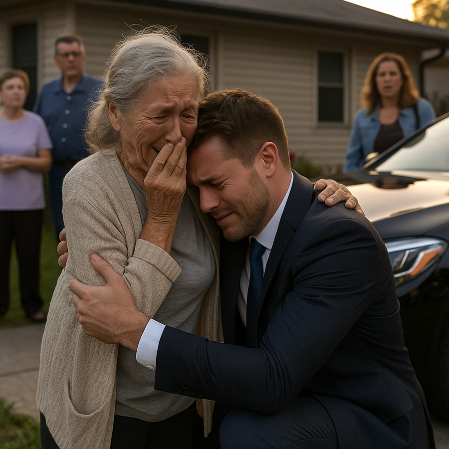 Clara temblaba. No podía creer lo que veía. Vecinos curiosos se agolpaban alrededor, mirando cómo aquel niño olvidado de la calle regresaba convertido en un magnate que lo tenía todo… y lo primero que hacía era honrar a la mujer que le había salvado la vida.