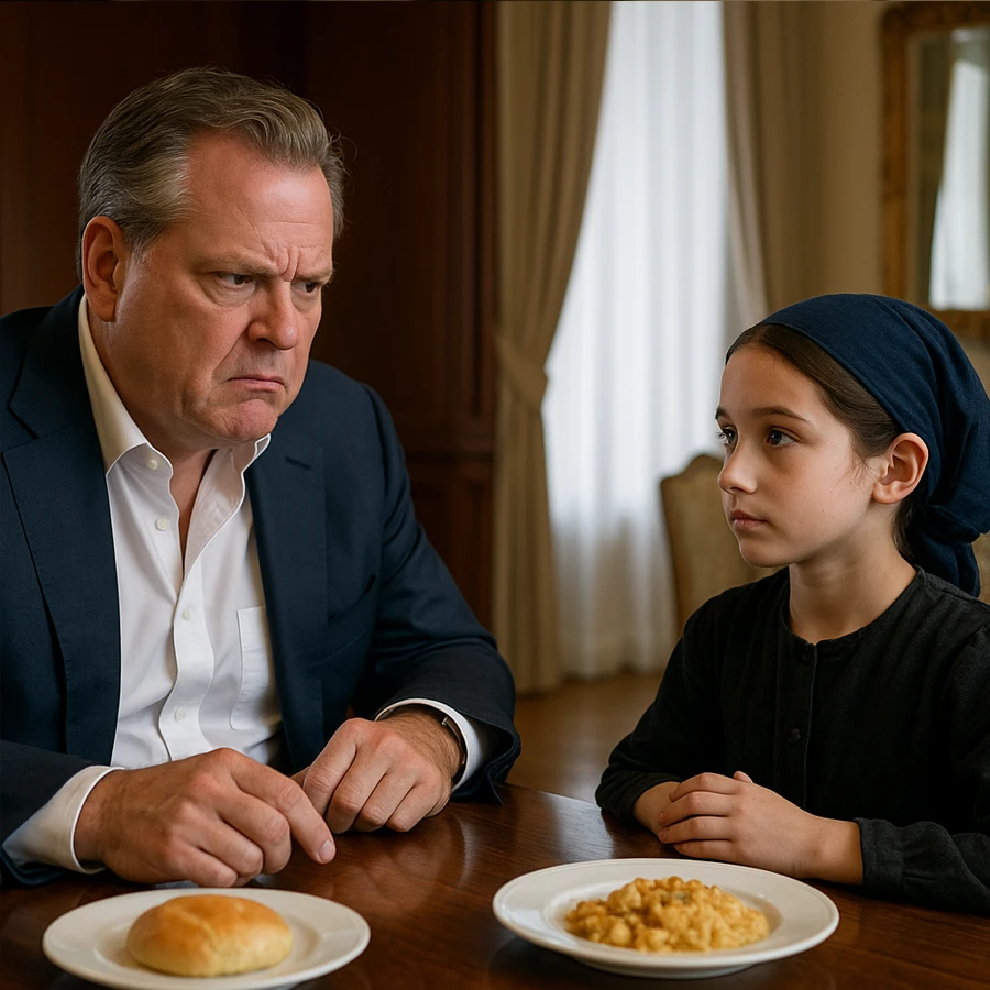 La pronunció una niña judía, de aspecto humilde, que parecía fuera de lugar en aquel mundo de oro y mármol. Al principio, el magnate estalló en carcajadas, convencido de que era una broma ridícula. Pero lo que sucedió después lo dejó paralizado.