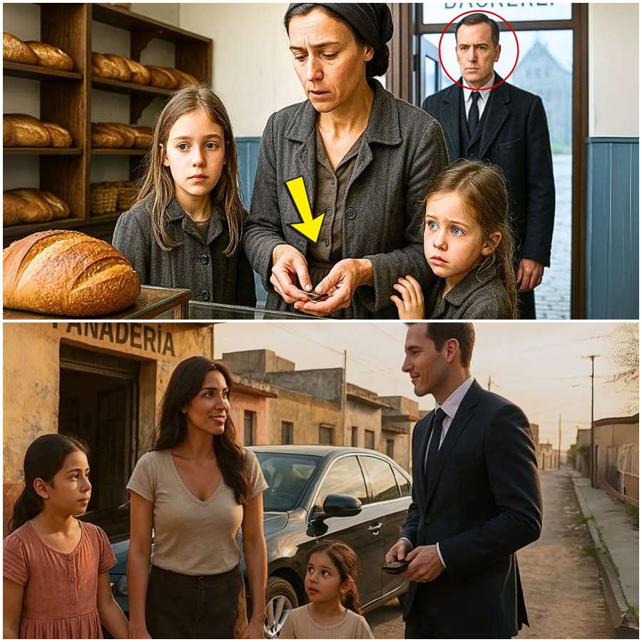 “Aquella mañana, una madre desesperada no tenía dinero ni siquiera para comprar el pan de sus hijas… pero cuando un misterioso millonario se detuvo inesperadamente frente a la panadería, ocurrió algo tan desconcertante y revelador que cambió para siempre el destino de la familia, sorprendiendo incluso a quienes creían haberlo visto todo en esa pequeña ciudad”