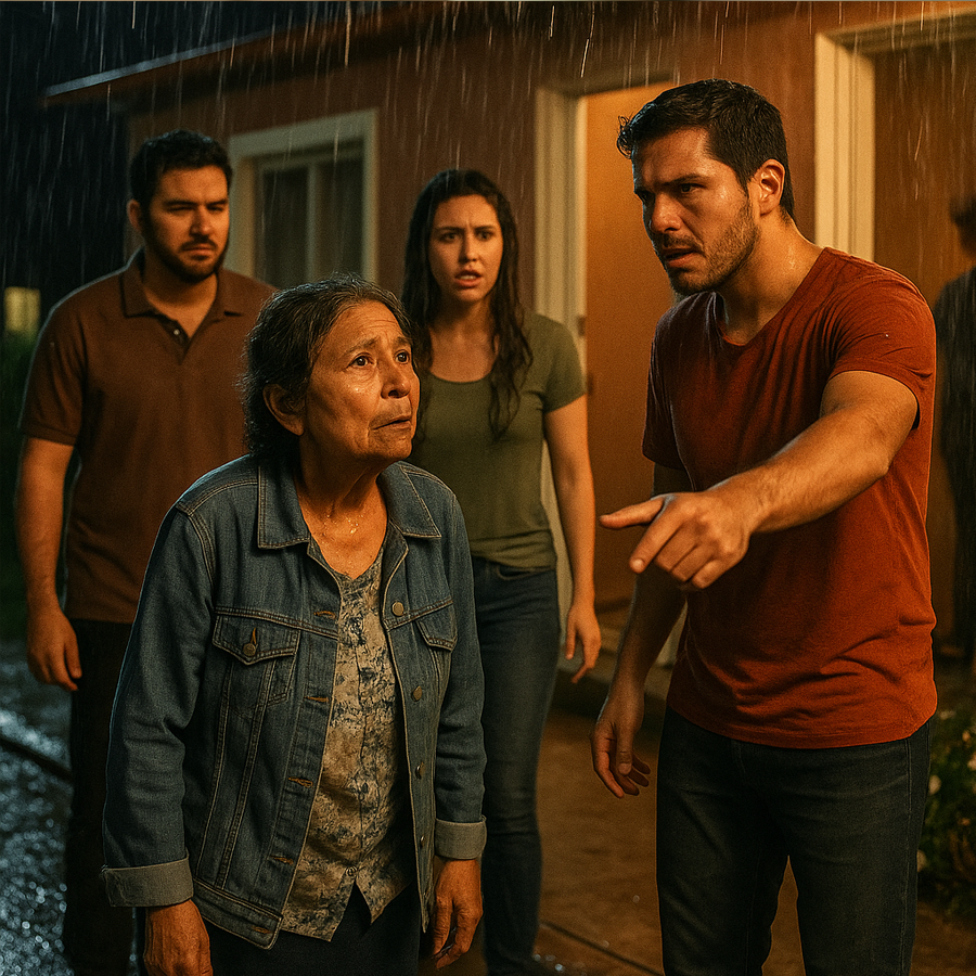 La noche caía sobre el pequeño pueblo de San Bartolo cuando Doña Elena, una mujer de 68 años, se quedó parada frente a la puerta de su casa, empapada bajo una lluvia torrencial. Su cabello, antes canoso y recogido con orgullo, goteaba sobre su viejo rebozo verde. En sus manos temblorosas sostenía una bolsa de tela con algunas prendas y fotografías.