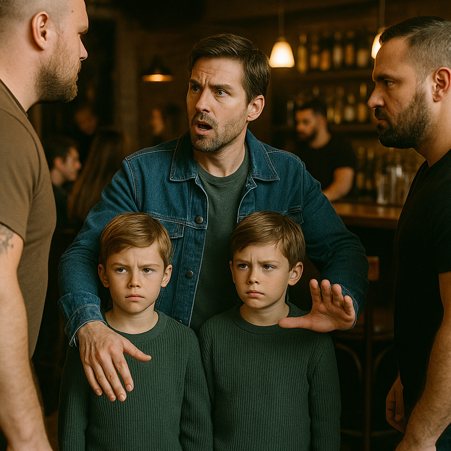 Era viernes por la noche en un pequeño pueblo de Texas. El bar Rusty Horse bullía con música country, risas roncas y vasos chocando. En medio del bullicio, un hombre entró con paso firme, escoltado por dos niños idénticos que no parecían pertenecer a ese lugar. Los tres vestían sencillamente, pero sus rostros irradiaban algo distinto: dignidad, calma y una fuerza contenida.