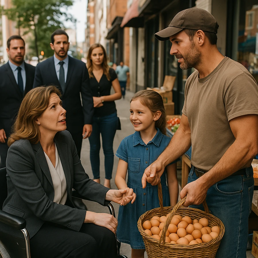 Aquel día, bajó de su vehículo de lujo para inspeccionar un terreno que su empresa deseaba adquirir. Con su elegancia habitual, recorría el área junto a asistentes y guardaespaldas cuando se topó con un hombre sencillo que vendía huevos en una canasta de madera.