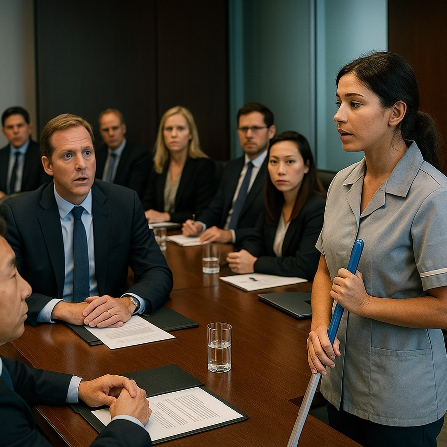 Todos se giraron. En la puerta, con un carrito de limpieza y un uniforme azul, estaba María López, la limpiadora del edificio.