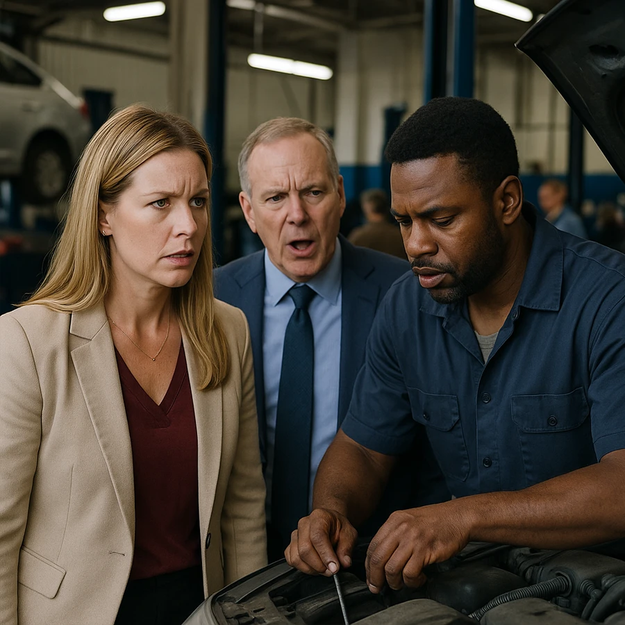 En lugar de marcharse, Marcus se levantó con calma. Caminó hasta el motor y, sin decir una palabra, comenzó a trabajar. La sala enmudeció. Nadie esperaba que aceptara el reto.