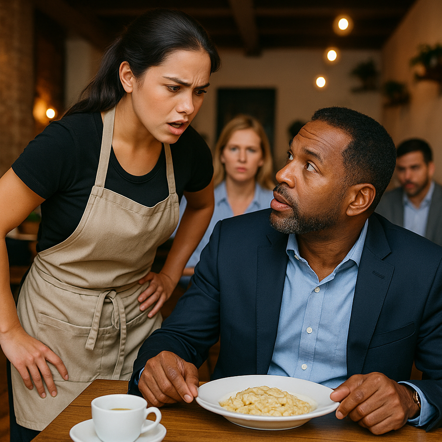 Cuando Camila se acercó a tomar la orden, él la miró con un aire de superioridad.