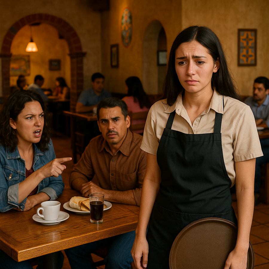 Era viernes, una de las noches más concurridas. Las mesas estaban llenas y el flujo de nuevos clientes parecía interminable. En la tercera mesa junto a la ventana se sentó una pareja que pronto llamaría la atención de todos: una mujer de expresión severa y un hombre de semblante altanero. La mujer era conocida en la zona por su temperamento impaciente y su tendencia a descargar frustraciones en quienes la atendían. El hombre, por su parte, parecía disfrutar de apoyar cada comentario de ella con sonrisas irónicas o murmullos cargados de desprecio.
