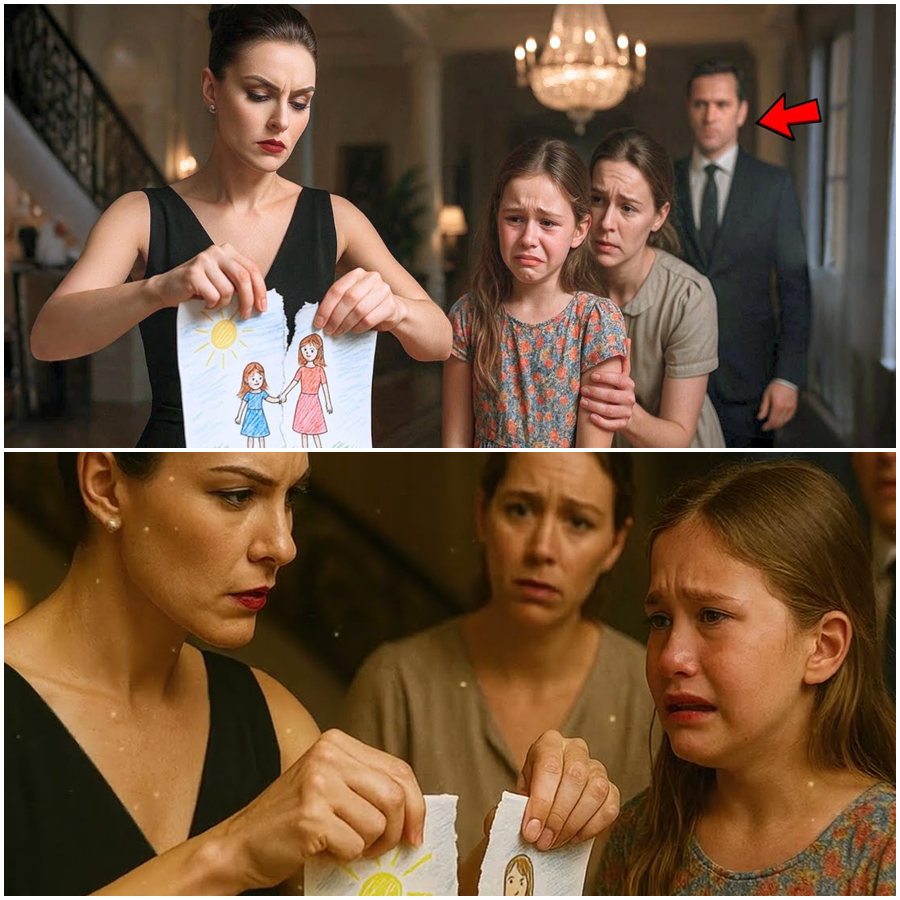 “Creyó que nadie lo veía cuando su elegante prometida rompió en pedazos el dibujo que la pequeña había creado con tanto cariño para la niñera… pero el millonario lo presenció todo desde la puerta, y la decisión que tomó después, inesperada y devastadora para muchos, reveló un secreto oculto que cambiaría para siempre el rumbo de la familia.”
