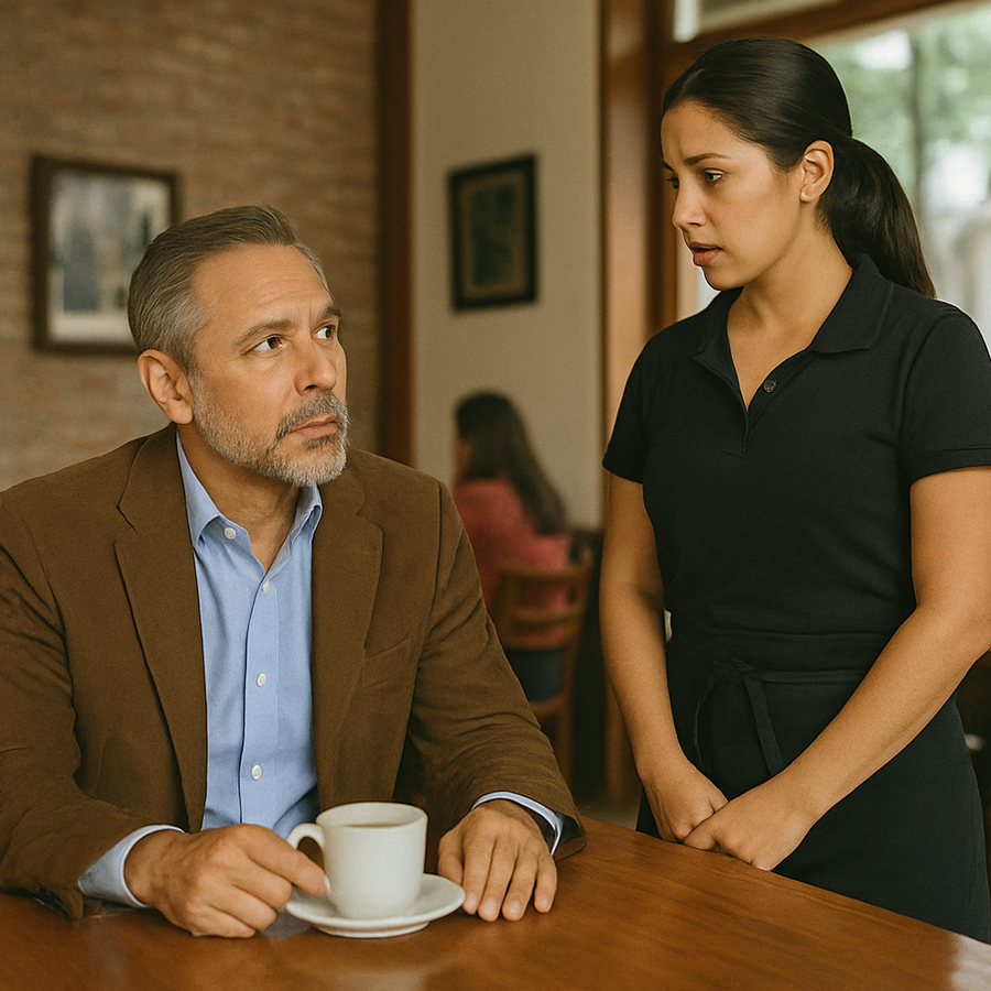 La cafetería “El Faro” siempre había sido un lugar tranquilo. Entre aromas de café tostado y conversaciones suaves, la vida transcurría sin sobresaltos. Elisa, una joven mesera de 26 años, trabajaba allí desde los dieciocho. Su vida era simple: casa, trabajo, y una madre enferma a la que cuidaba con devoción. No esperaba nada extraordinario. Hasta que una tarde, un cliente diferente cruzó la puerta.