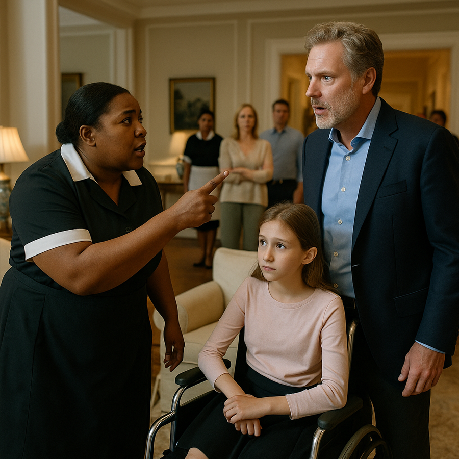 El padre se quedó inmóvil. Nunca había visto a un empleado levantar la voz de esa manera. Pero lo que más lo sorprendió no fue la rebeldía… sino el hecho de que la sirvienta defendía a su hija como si fuera suya.
