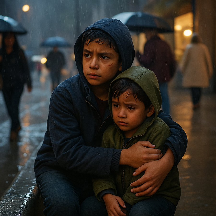 Aquellos dos hermanos, que una vez temblaron bajo la lluvia, encontraron en una desconocida el calor que les fue negado.